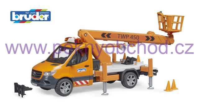 MB Sprinter plošina TWP450, mechanicky funkční plošina se zvukovým majákem a kužely. Kvalitní provedení. Pro děti od 4 let. Velikost auta 51 cm.